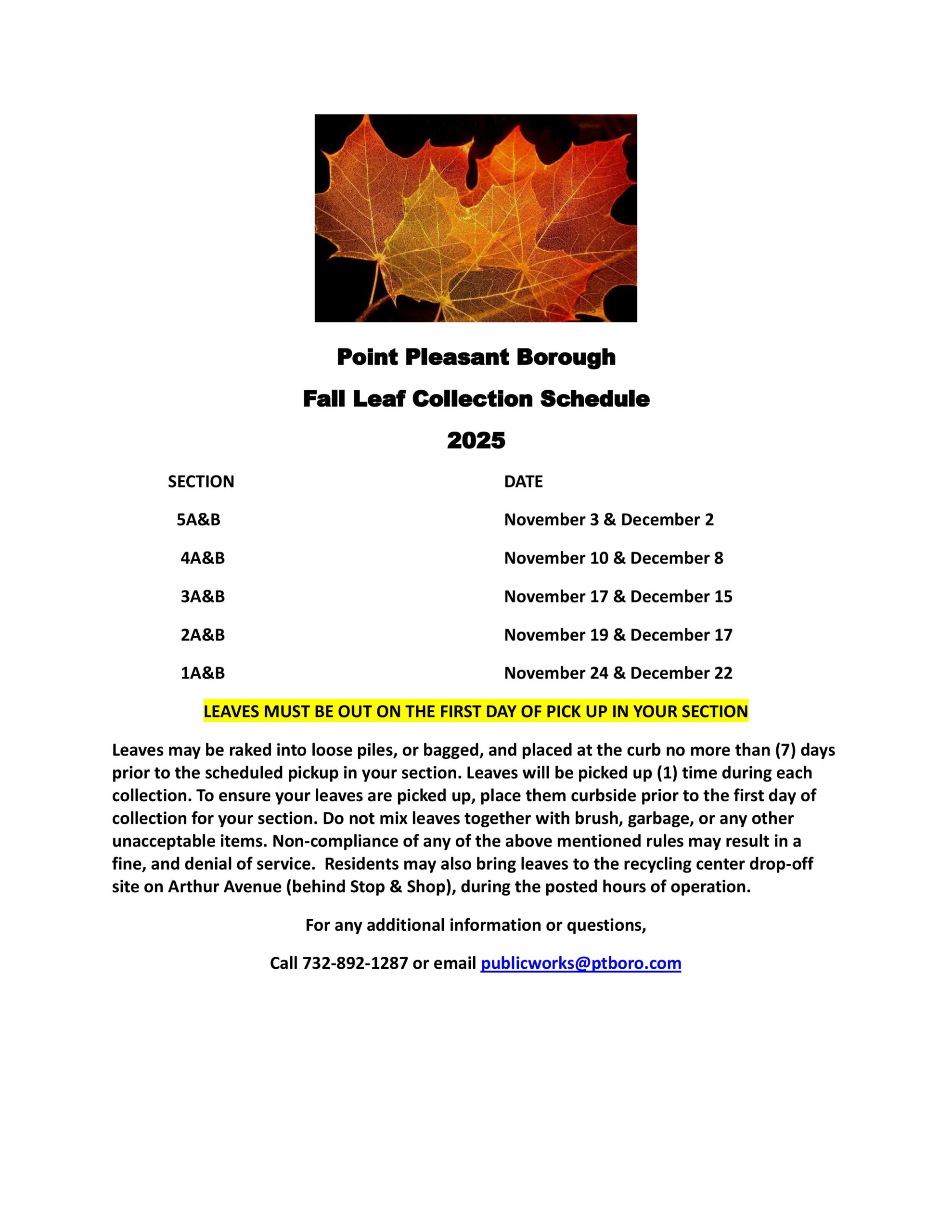 Borough of Point Pleasant - Twice a week Summer Trash Pick Up begins every year on the second Monday of June and ends the Second Monday of September. This [...]