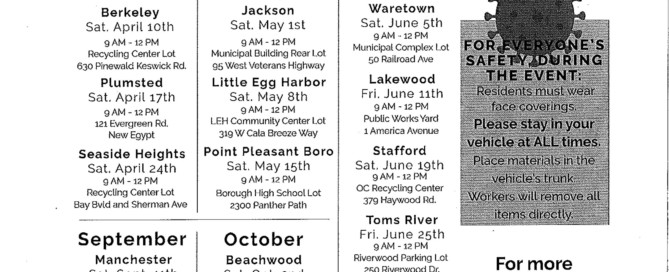 Borough of Point Pleasant - Please note that all Borough Offices will be closed on April 2, 2021 in observance of Good Friday. If you have an emergency, please call the Police Department at [...]